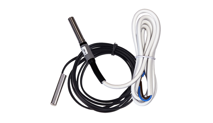 NTC датчик температуры может использоваться для измерения температуры воздуха (в помещении или на улице) или теплоносителя. Место применения определяется настройкой. Сопротивление 10 кОм.