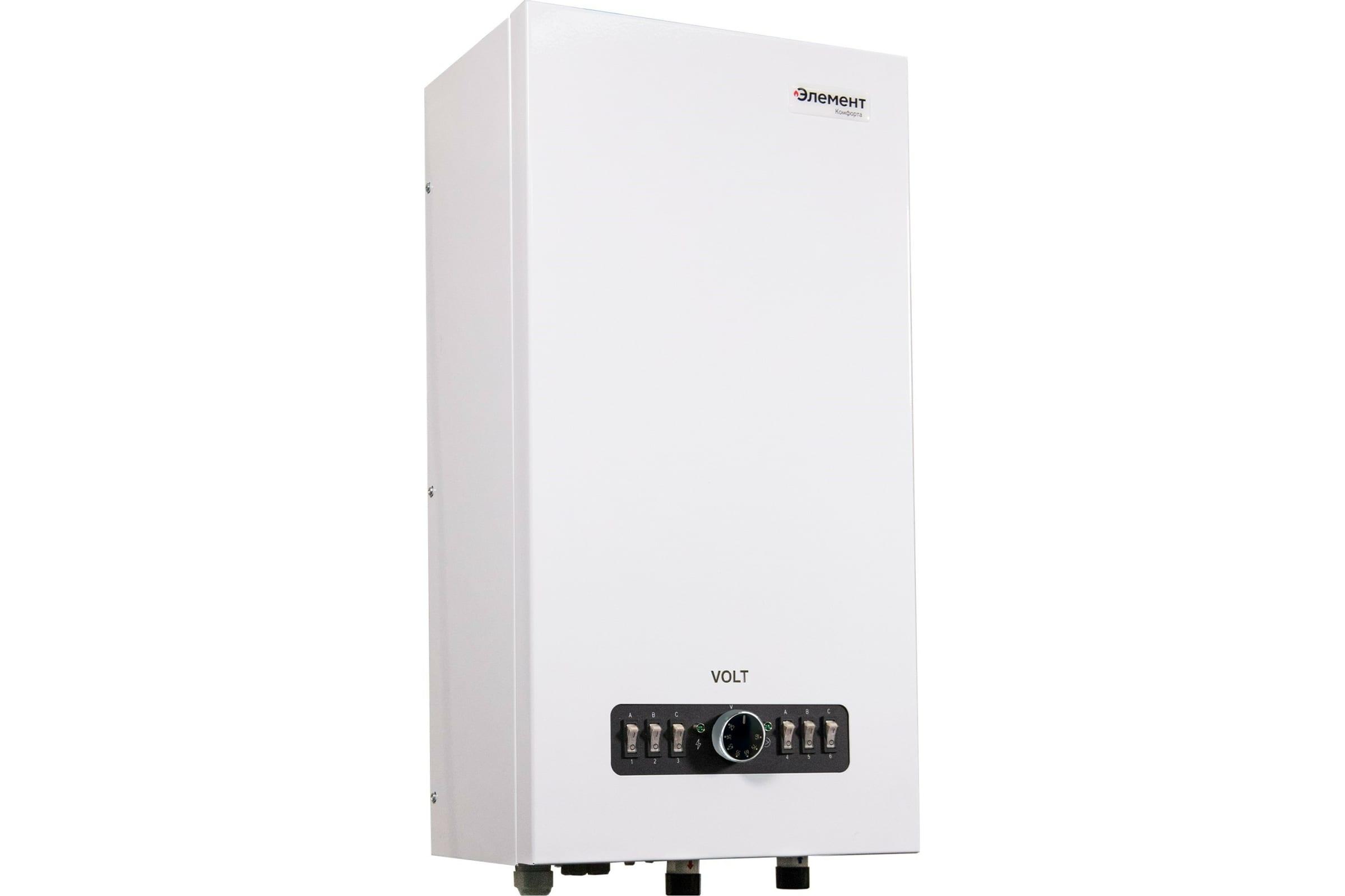 Настенный электрический котел Элемент Комфорта VOLT-15 - одноконтурная мини котельная для обогрева помещений площадью до 150 кв.м. Подходит для обогрева как жилых так и промышленных помещений. Оснащен 6 (шестью) ступенями мощности, что позволяет выбрать оптимальный режим работы котла. В комплектацию котла входят циркуляционный насос, расширительный бак, группа безопасности.