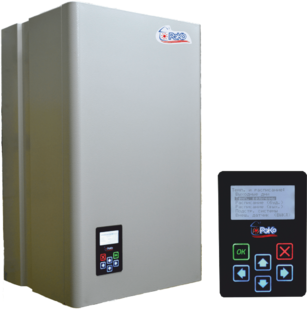 Управление электрическим котлом РЭКО осуществляется при помощи функциональной панели с ЖК-дисплеем, имеющей все необходимые индикации (информация о текущих температурах, режимах работы и неисправностях).