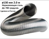 Газоход гибкий гофрированный ø130 мм 2.0 м нержавеющая сталь (толщина ленты 0,1мм,до 700 град.Россия)