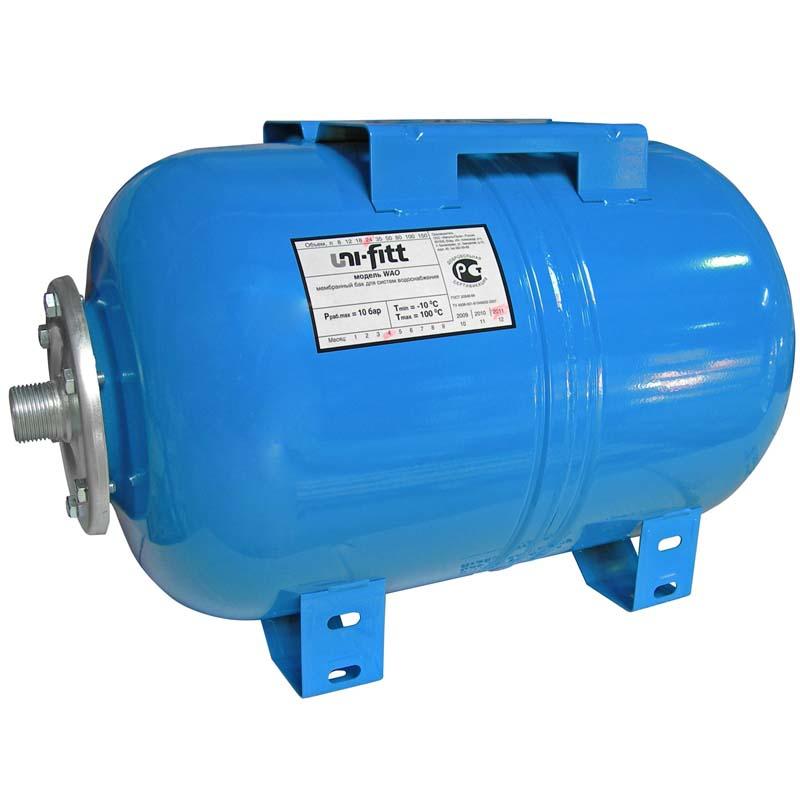 Гидроаккумулятор WAO для водоснабжения горизонтальный Uni-Fitt присоединение 1" 100 литров представляет собой мембранный расширительный бак для водоснабжения и предназначен для поддержания рабочего давления и предотвращения разрушения системы от гидравлического удара. Бак рассчитан на работу при температуре от +1 оС до +100 оС. Гидроаккумулятор выполнен из прочной высококачественной стали и по всей конструкции рассчитан на многолетнюю эксплуатацию. Внешняя сторона бака имеет эпоксиполиэфирное покрытие. Мембрану, используемую в расширительном баке, можно заменить – она выполняется из специальной резины EPDM.