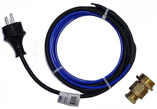 Комплект нагревающего кабеля состоит из саморегулирующегося нагревательного кабеля, оснащенного установочным проводом с евровилкой на конце с одной стороны и концевой муфтой с другой.