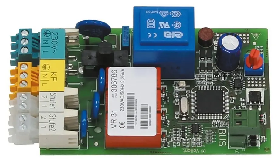 Коммутационный модуль Vaillant VR 31 предназначен для подключения одно- или двухступенчатого котла к системе управления calorMATIC 630/3 и auroMATIC 620. Также данный модуль необходим для создания каскада системы отопления, и как правило устанавливается в клеммном шкафу котла.