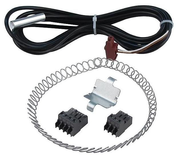 Комплект датчиков Logamatic FV/FZ предназначен для измерения температуры подающей/обратной линии. Состоит из датчика температуры подающей линии (круглый датчик) для отопительных контуров со смесителем или дополнительного датчика температуры для функций котлового контура с соединительным штекером, комплектующими и др.