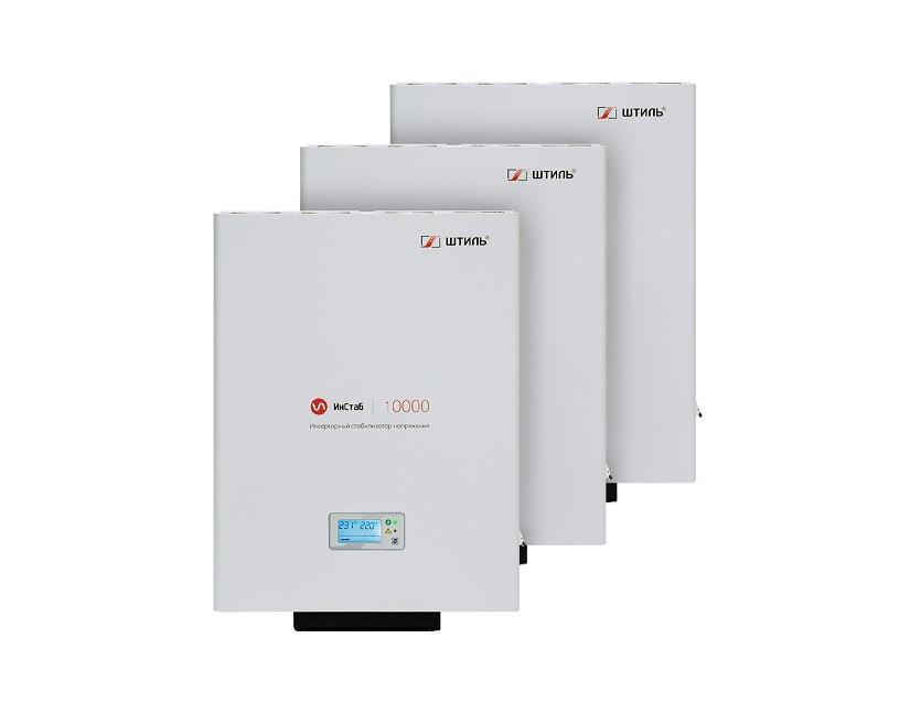 Комплект из трех настенных стабилизаторов IS10000 – это готовое решение по защите от нестабильного сетевого напряжения в сети 380 В однофазных ответственных электроприборов бытового или коммерческого назначения с суммарной потребляемой мощностью до 30 кВА/27 кВт, например: