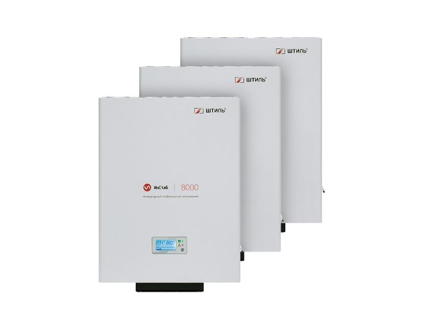 Комплект из трех настенных стабилизаторов IS8000 – это готовое решение по защите от нестабильного сетевого напряжения в сети 380 В однофазных ответственных электроприборов бытового или коммерческого назначения с суммарной потребляемой мощностью до 24 кВА/21,6 кВт, например:
