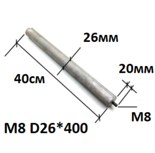 Магниевый анод M8 D26*400 ( резьба М8, 8 мм)