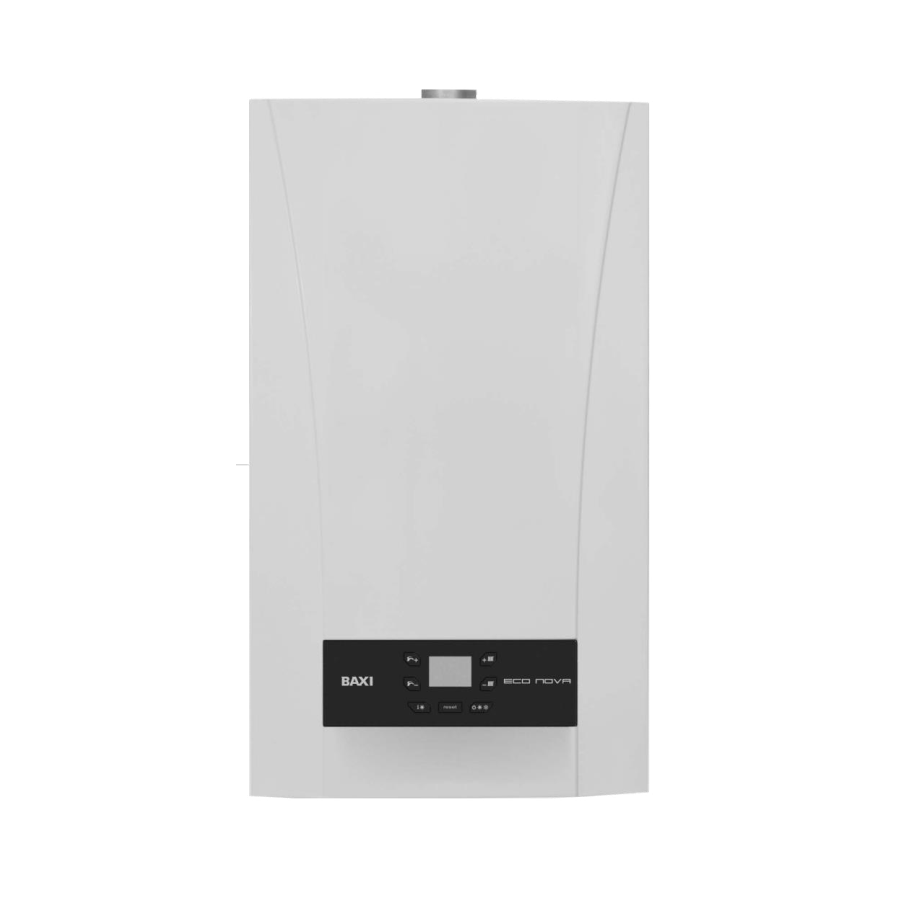 Настенные газовые котлы BAXI ECO NOVA поставляются в следующем комплекте: турбинный датчик протока горячей воды (расходомер), первичный медный теплообменник, покрытый специальным составом для дополнительной защиты от коррозии, энергосберегающий циркуляционный насос со встроенным автоматическим воздухоотводчиком, вторичный пластинчатый теплообменник из нержавеющей стали, латунный трехходовой клапан с электрическим сервоприводом, манометр, автоматический байпас, фильтр на входе холодной воды. К прибору отопления можно подключать комнатный термостат, программируемый таймер и системы удаленного управления через интернет.