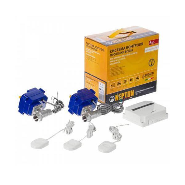 Neptun Bugatti Base - это лучшее соотношение цены и качества. Модуль управления Neptun Base - простое, но при этом очень надежное устройство. Дополнительных функций не много, но если они Вам и не нужны, то это идеальное решение. Главное, что в комплекте идут зарекомендовавшие себя шаровые краны Neptun Bugatti, которые едут напрямую с завода в Италии. У электропривода большое усилие (ломает карандаши), которое никогда не будет лишним с учетом не очень качественной водоподготовки в России, в кране используются самые лучшие уплотнительные материалы (первичный фторопласт, который выдерживает даже серную кислоту) и конечно же - есть ручное аварийное открывание на случай, если не будет питания или электроника выйдет из строя.