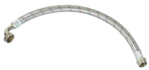 Гибкая подводка представляет собой шланг из нетоксичной резины в оплетке из нержавеющей стали. По концам подводки напрессованы ниппели с наружной резьбой или с накидной гайкой, укомплектованной прокладкой.